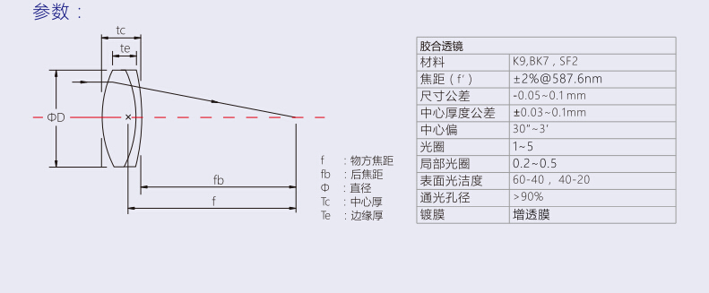 型 號:膠合透鏡